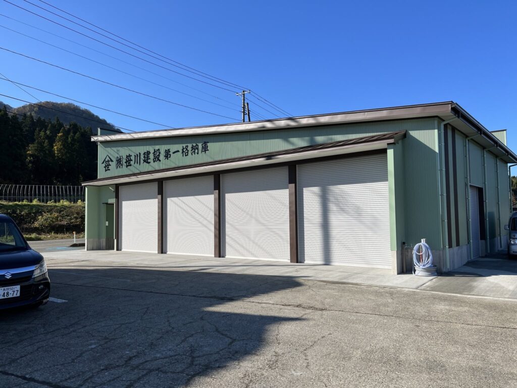 このたび、新築工事中でした『㍿笹川建設・第一格納庫』がついに!!完成いたしました。