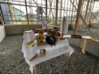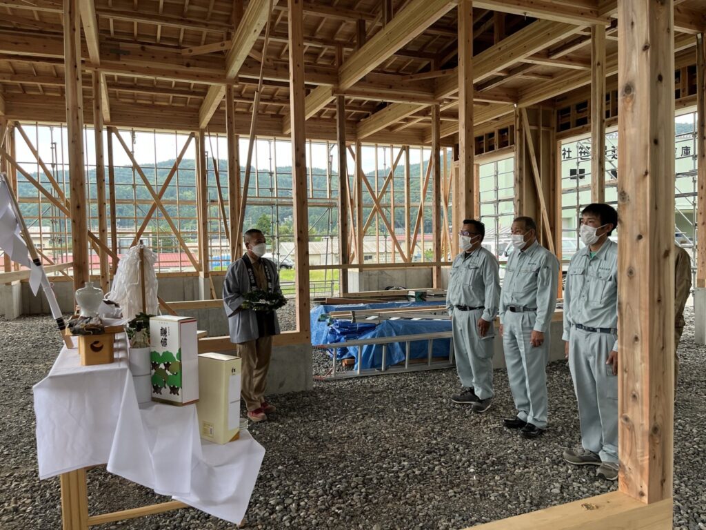 “土地や建物の守護神と匠の神を祭って、これまでの工事の無事に感謝し、建物が無事に完成することを祈願するもの”です。