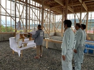 上棟式の当日は、曇天模様ではありましたが雨に遭うことなく、無事に式が執り行われました。