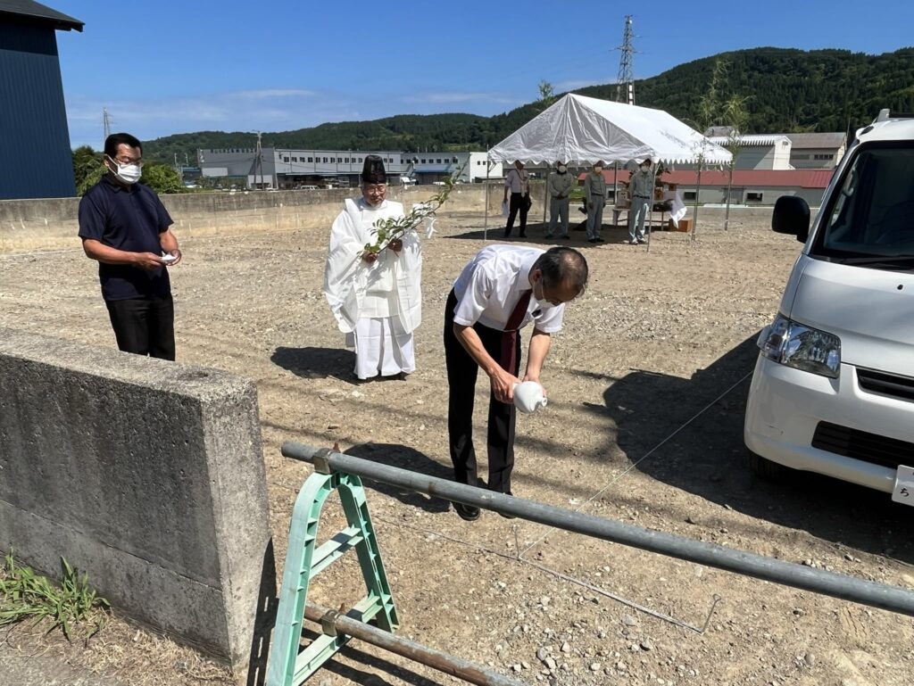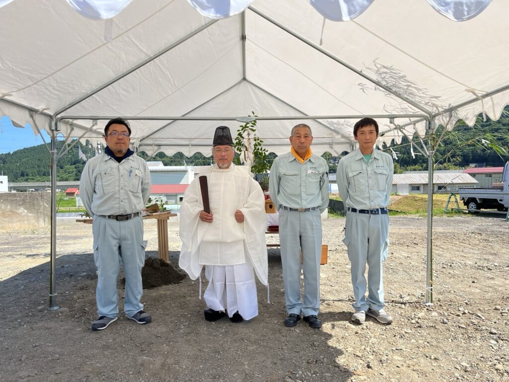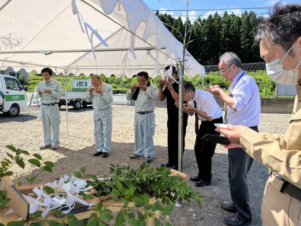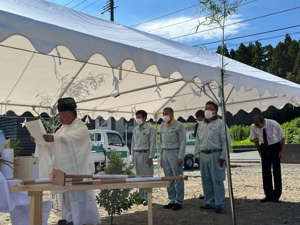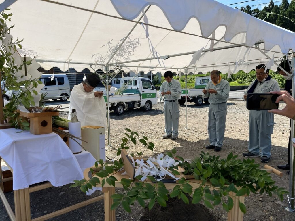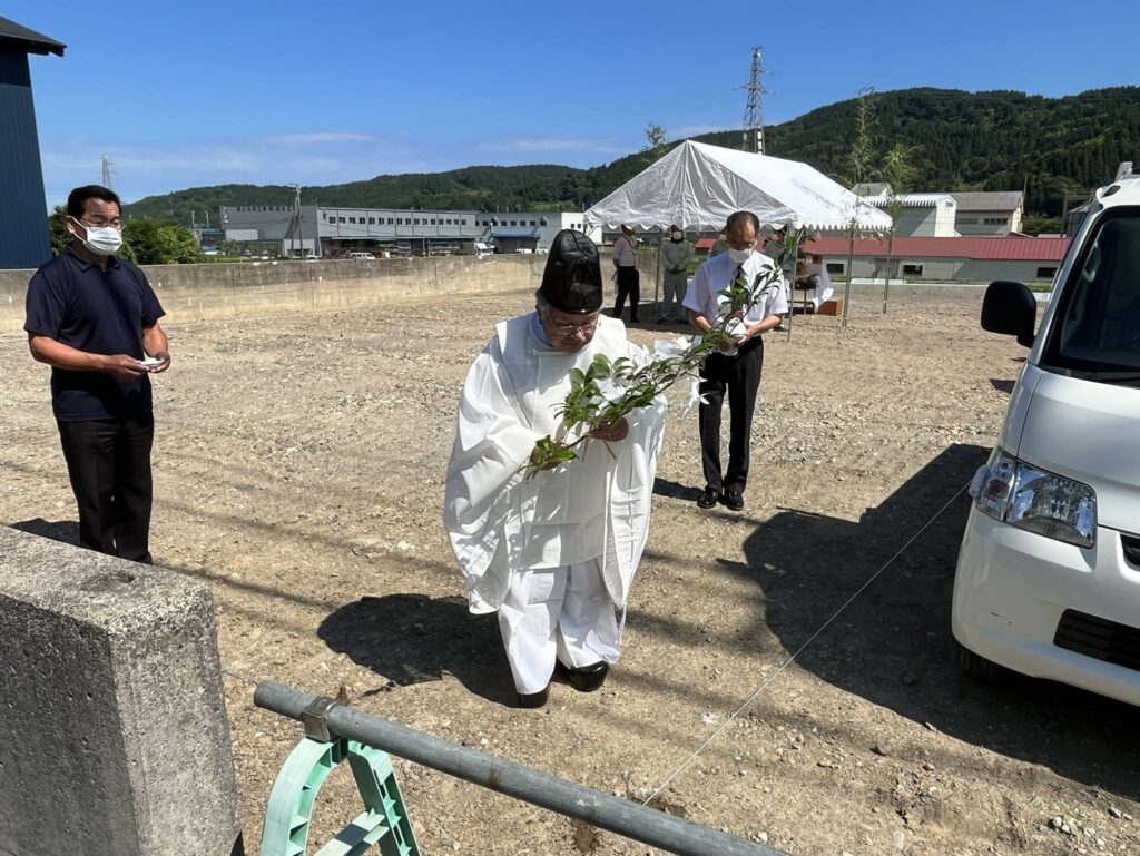 神職 佐藤宮司のもと、施工業者・設計者・施主らが一同に参列致しました。