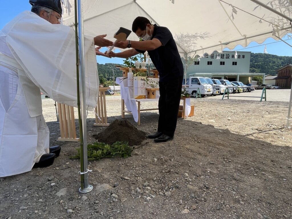 基礎工事の際に建物の中心になる辺りに“地面の神様にお供えする意味”を持つ「鎮物埋納の儀(しずめものまいのうのぎ)」と言います。