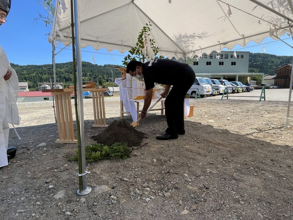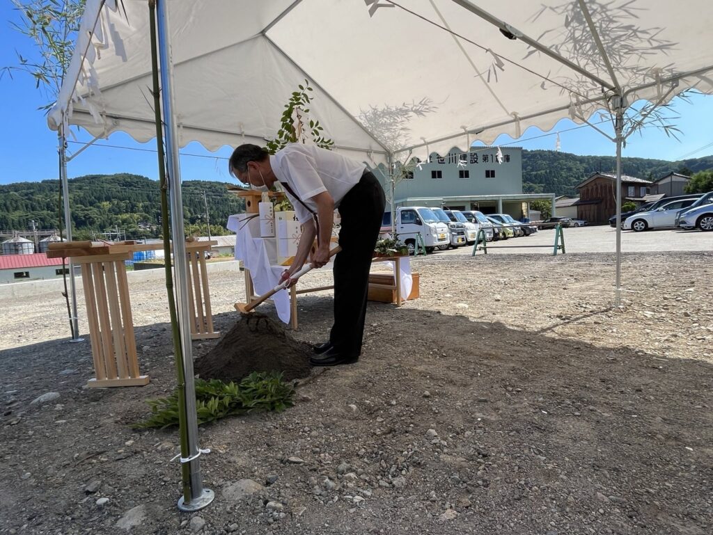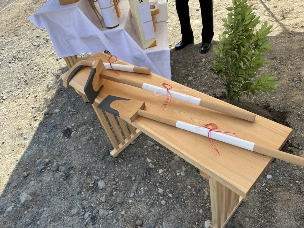 鍬を使って“土を掘り起こし起工の一歩を印す意味”を持つ「穿初の儀(うがちぞめのぎ)」、