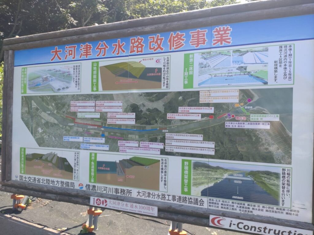 山地の掘削や新第二床固の建設、大河津分水路の川幅を広げるために行われている工事など
