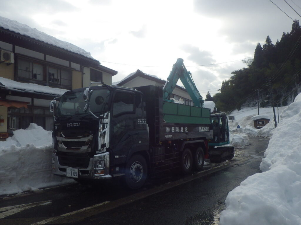 また、いつぞや大雪になるかも分かりません。除雪車、バックホウ、大型ダンプを用いて、