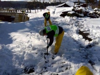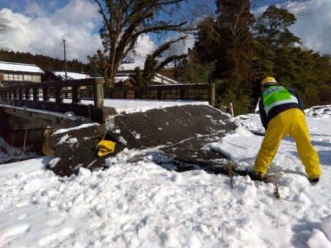 途中、雪予報が的中し除雪を行いながらの作業となりました。