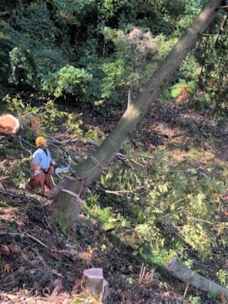 伐採する際、木の周囲の状況や枝葉の付き方など様々なことを踏まえ、
