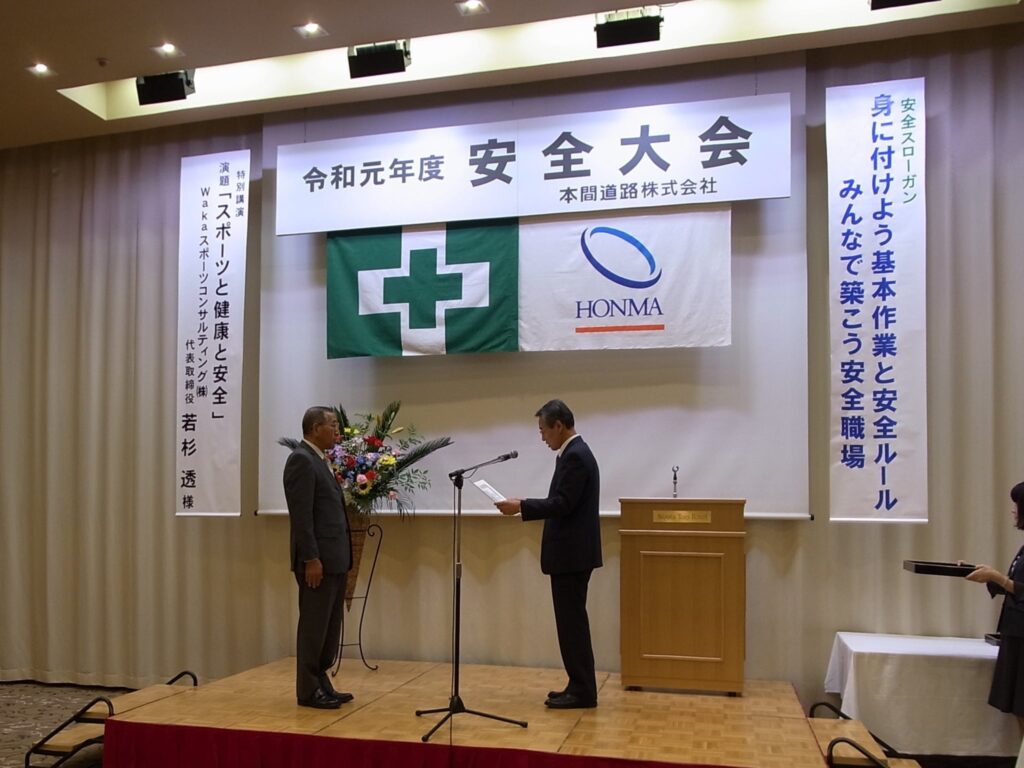 先日、6月21日(金)に 本間道路 株式会社 様の 令和元年度の安全大会に石﨑社長が会社を代表し、出席させていただきました。