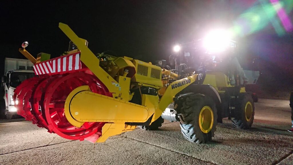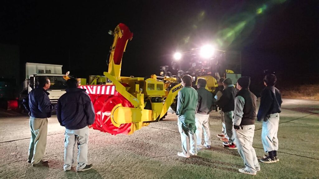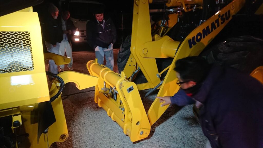 排土板とロータリーの付け替えも運転席からは見えない箇所を