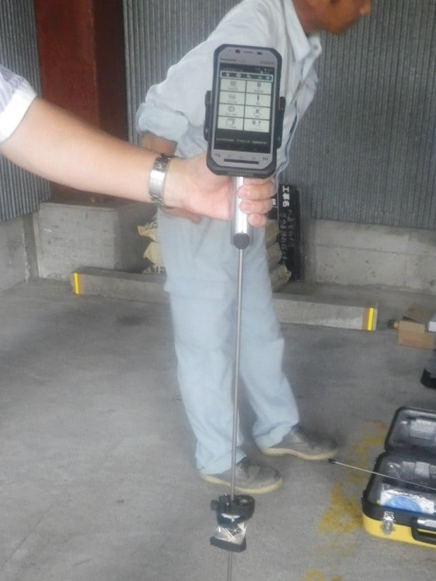 1人での測量が行え、作業効率UP上に曲がる右矢印(赤)上に曲がる右矢印(赤)です。